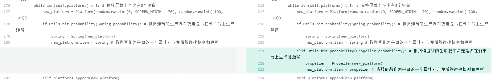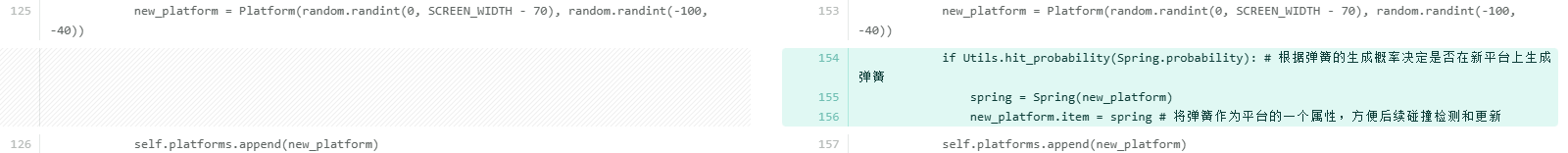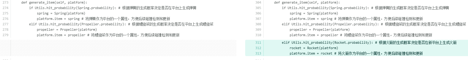 elif Utils.hit_probability(Rocket.probability): # 根据火箭的生成概率决定是否在新平台上生成火箭