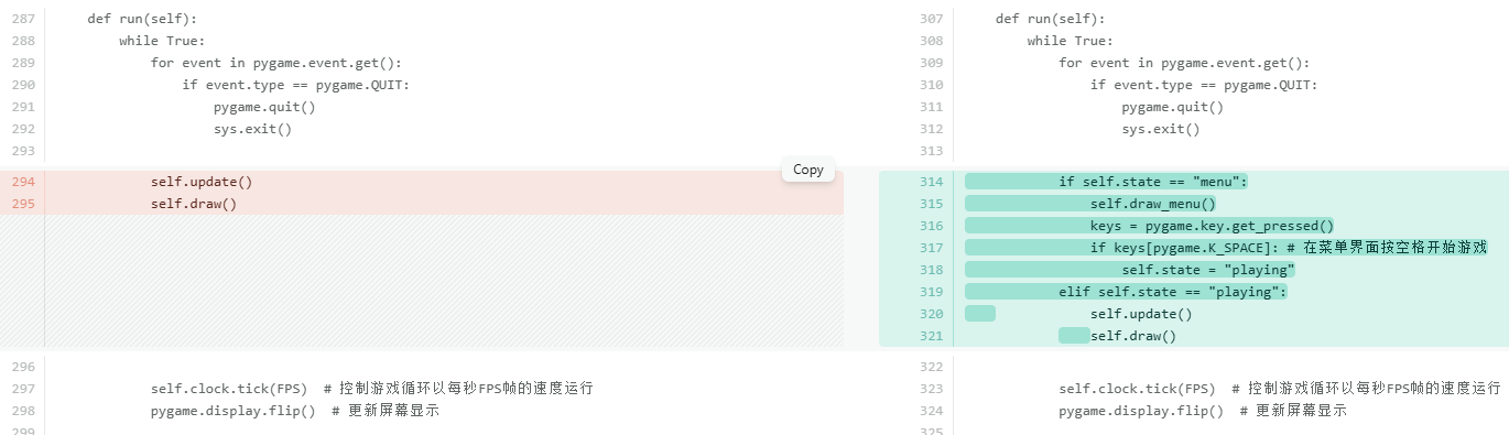if keys[pygame.K_SPACE]: # 在菜单界面按空格开始游戏