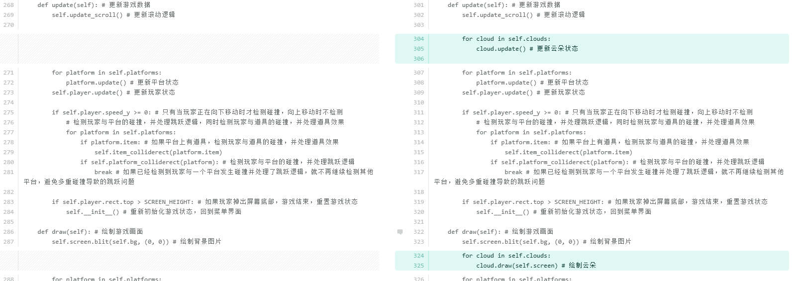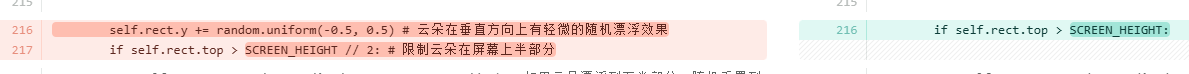 cloud.rect.y += scroll_amount // 2 # 云朵以较慢的速度向下滚动