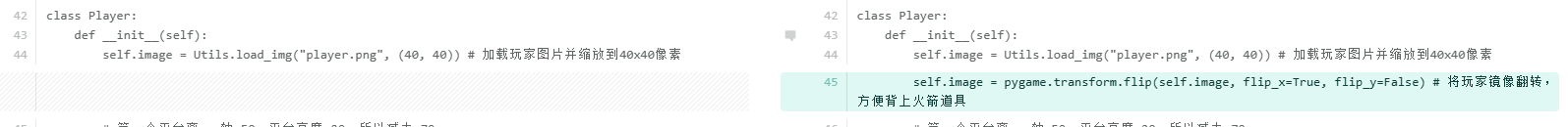 self.image = pygame.transform.flip(self.image, flip_x=True, flip_y=False) # 将玩家镜像翻转,方便背上火箭道具